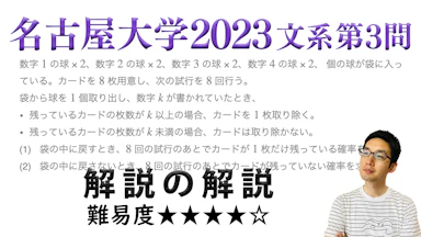 確率の良問!名古屋大学2023年文系第3問で学ぶ(ノート付き)