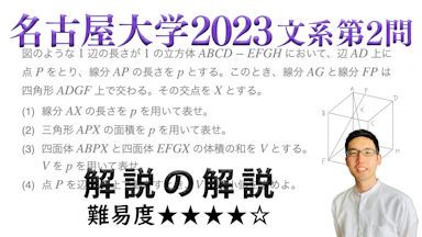 名古屋大学2023文系第2問でじっくり学ぶ(空間図形)