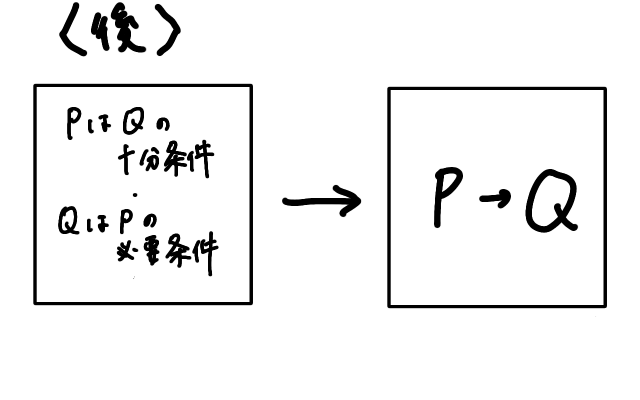 幸運にもokke内にわかりやすい解説が載っているので参照してみてください!→必要十分条件