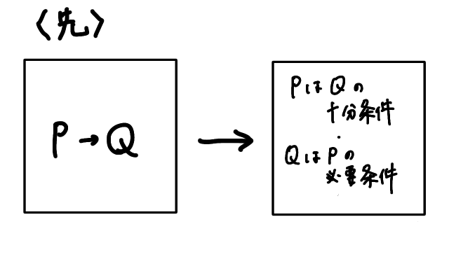 「PはQの十分条件であり、QはPの必要条件です」と。