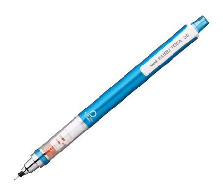 書くたびに芯の向きが自動で回転し、常に尖った部分で書き続けることができます。