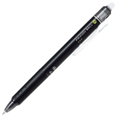 このボールペンはペン先の反対側のラバーで書いた文字を擦ると、摩擦によって文字を消すことができます。