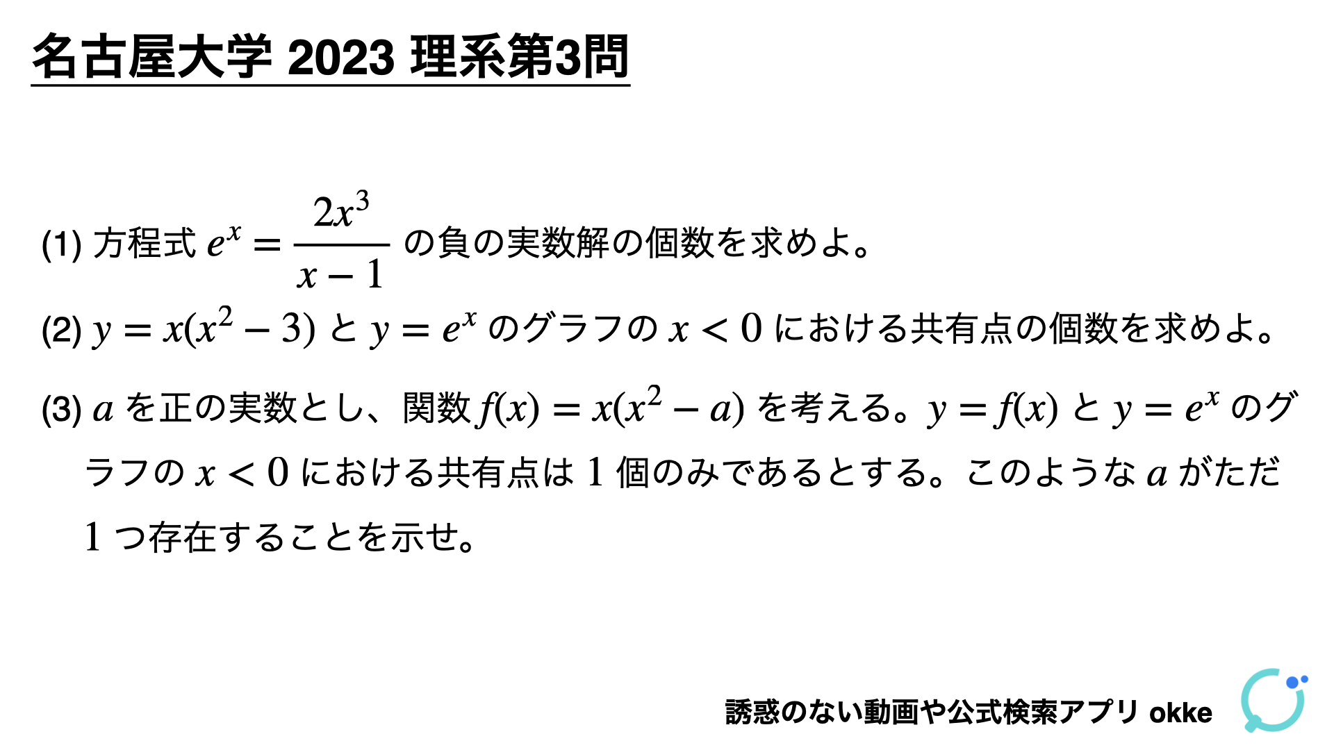 今日は、名古屋大学2023年理系第3問の微分の問題について、他の問題にも応用が効くように深くわかりやすく解説します。