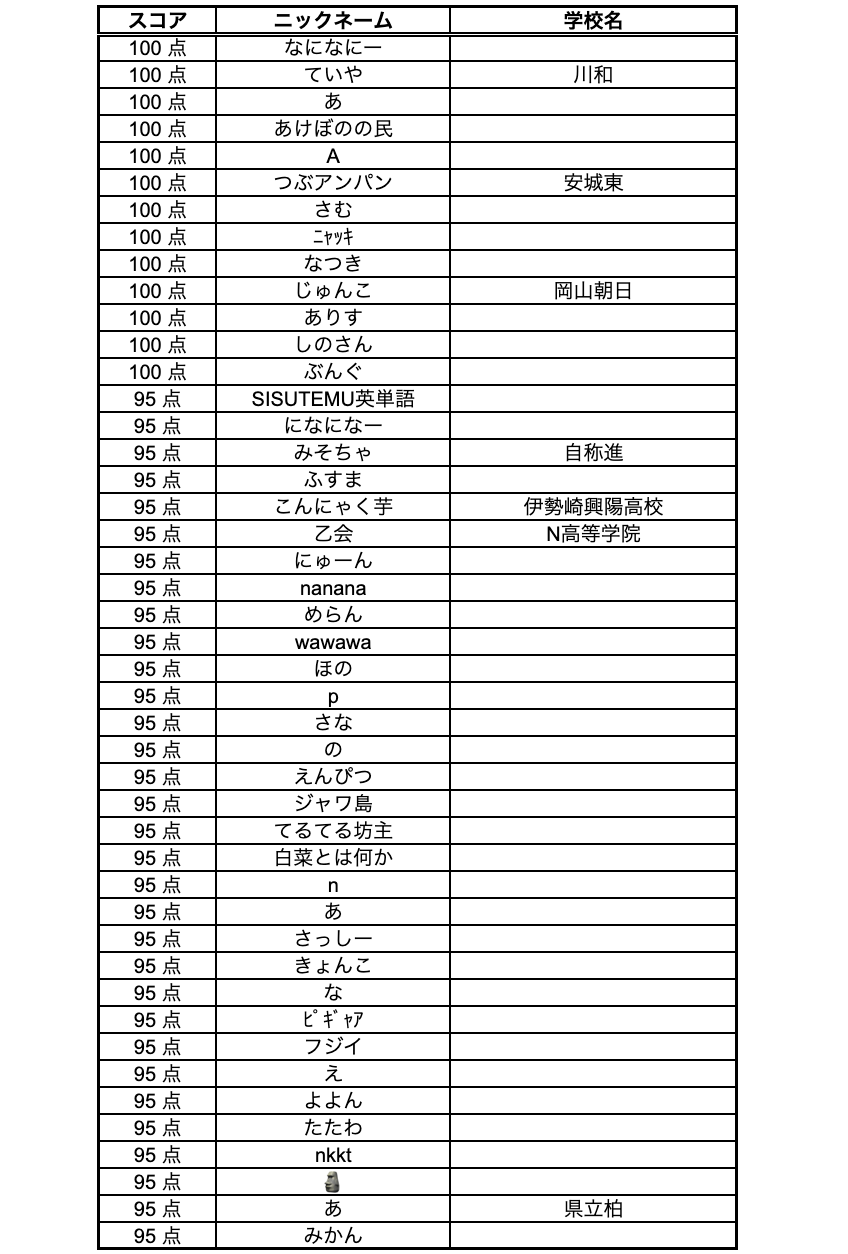 復習のため2回以上受けてくださっていた素晴らしい方もいて、その場合は1回目の得点と思われるもので判断させて頂いておりますので、ご了承ください🙇