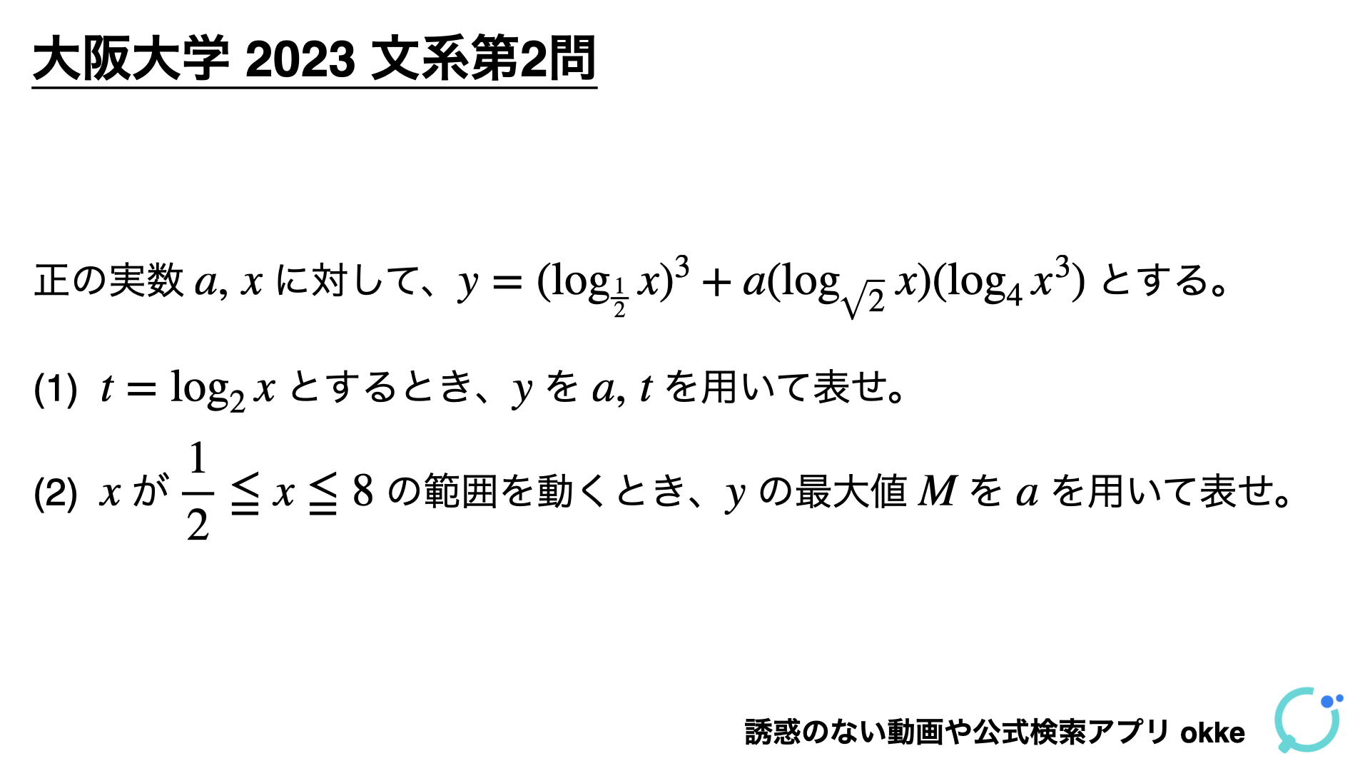 今日は、大阪大学2023年文系第2問の対数と微分の良問について、他の問題にも応用が効くように深くわかりやすく解説します。