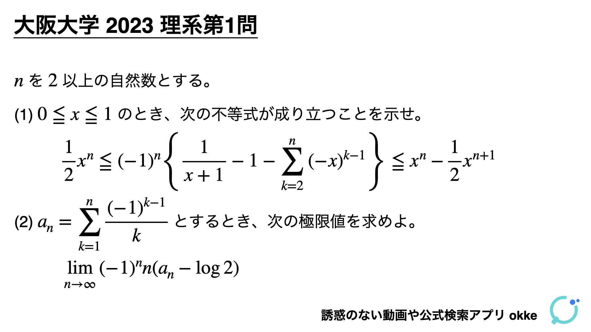 今日は、大阪大学2023年理系第1問の極限の問題について、他の問題にも応用が効くように深くわかりやすく解説します。