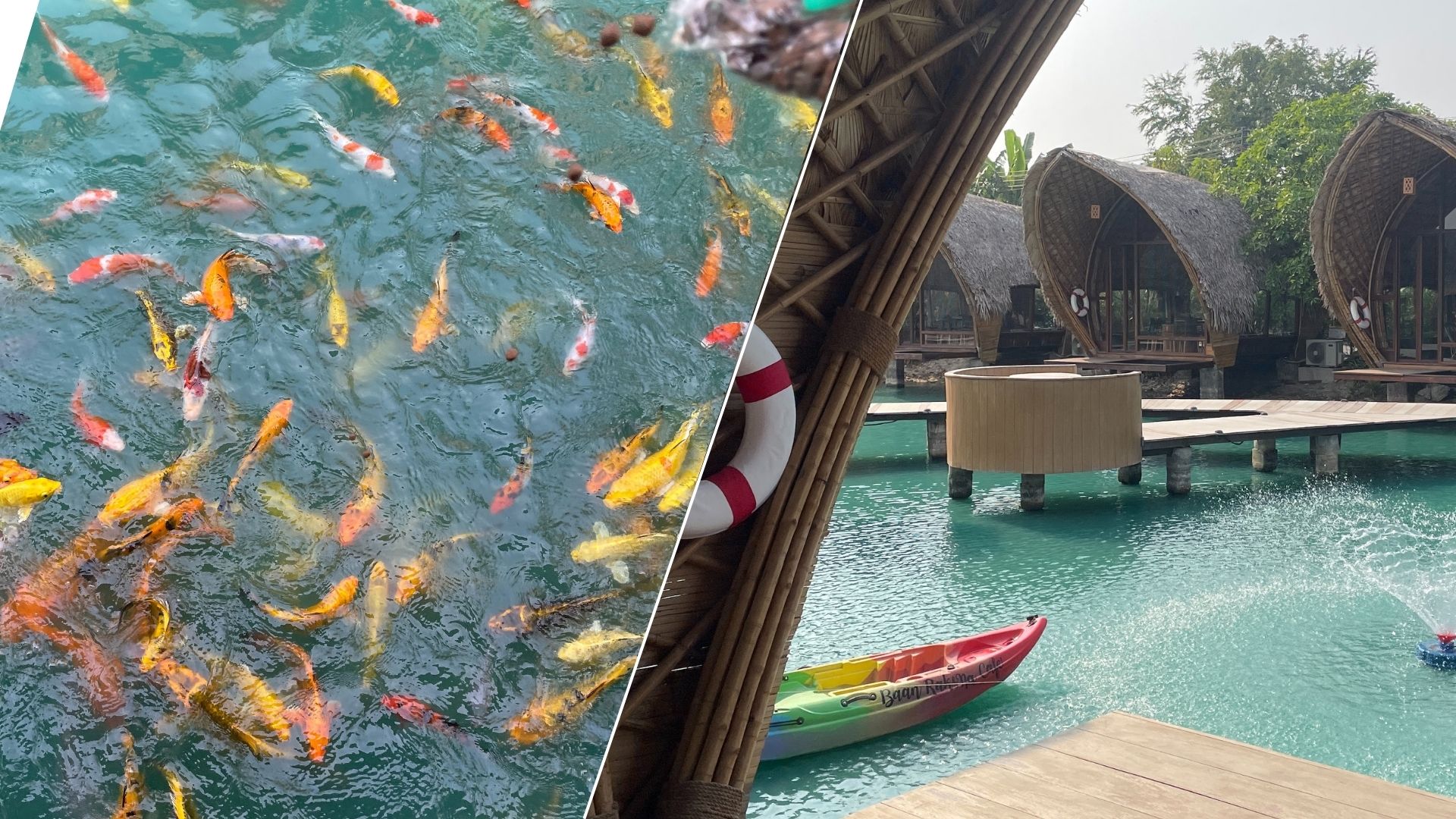 ということで、水の上に席があり、カラフルな鯉が泳ぐカフェに立ち寄りました。