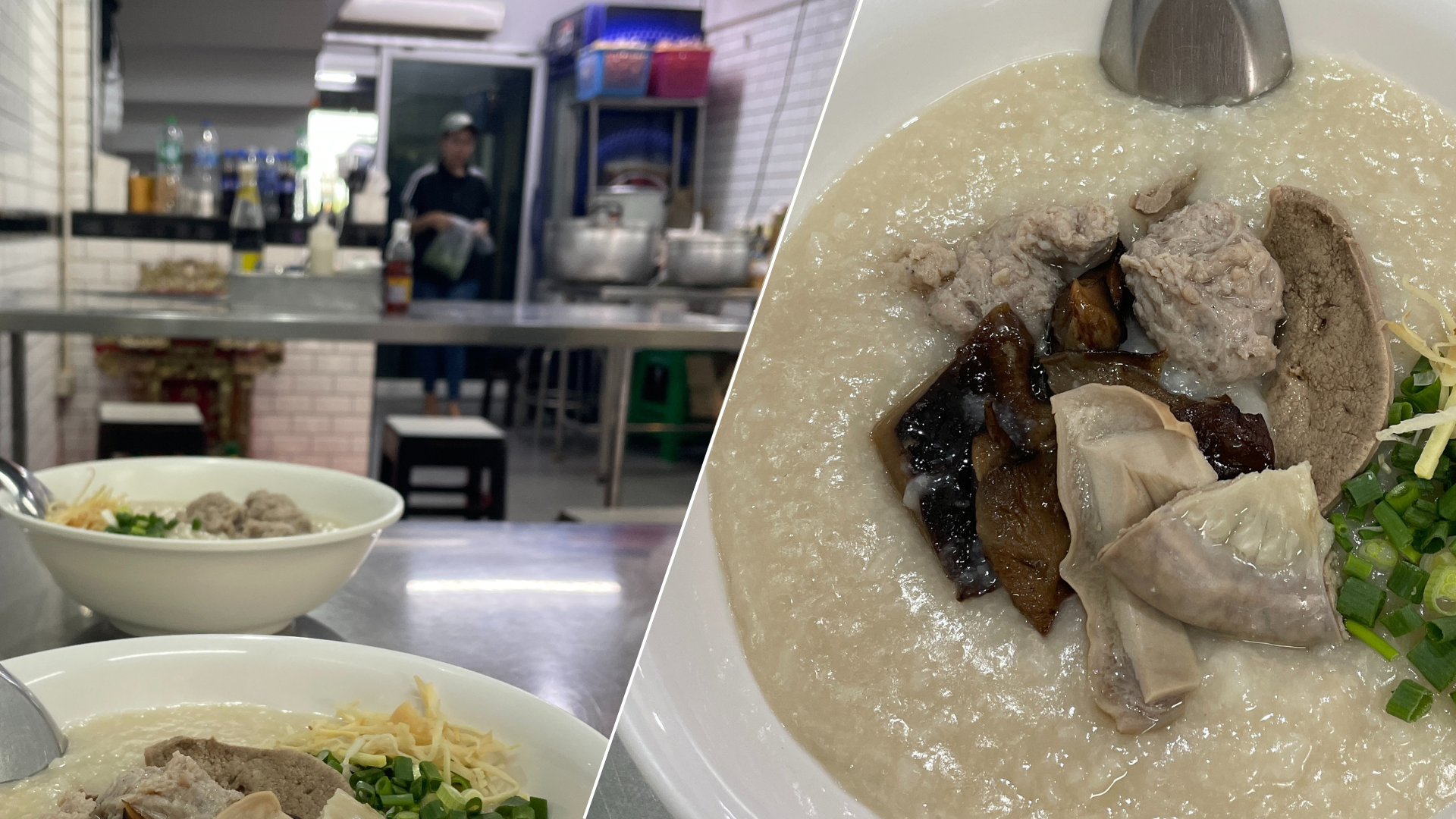 私は「内臓としいたけ入りのおかゆ」を注文し、レバーや腸などクセのある食べ物が好きな私には大当たりで、想像以上の美味しさでした。