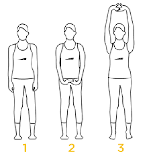 - 左手を後ろに回して、右手の指先に触れるようにします。