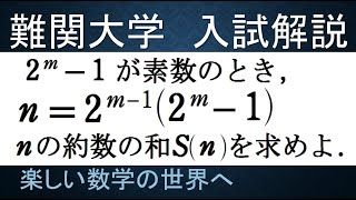 【難関大入試演習】原論にある歴史的有名問題 完全数をチェックする問題【数検1級/準1級/大学数学/高校数学/数学教育】JMO IMO Math Olympiad Problems楽しい数学の世界へ