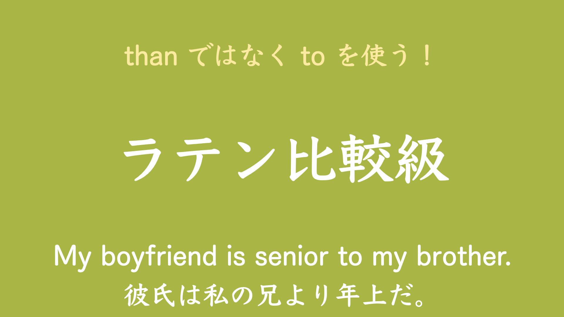 この映像授業では「【高校 英語】 toを用いる比較級」が約5分で学べます。身につけたいポイントは「superior to~ 「~よりすぐれている」 など」です。映像授業は、【はじめに】⇒【今回のポイント】⇒【今回のまとめ】の順に見てください。