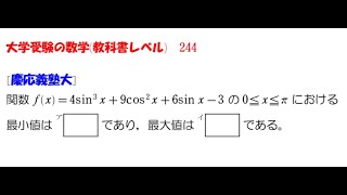 今回は慶應義塾大学看護医療学部2025第1問(4)。三角関数の最大の問題。