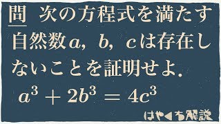 不定方程式に正の整数解が存在しないことの証明の問題。