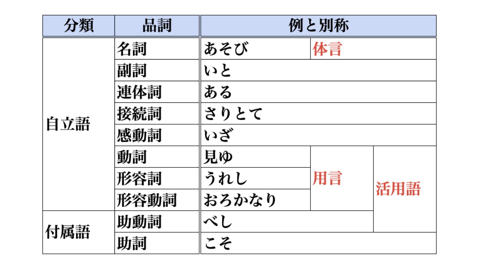 3:00 自立語・付属語の分類。「助」があったら付属語と覚える