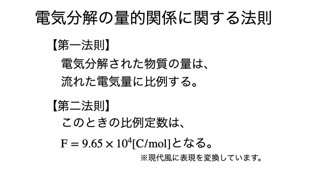 ✅電子1mol集めたら、96500Cの電気量を持って、これをファラデー定数という!