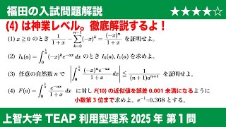 福田の数学〜上智大学2025TEAP利用型理系第1問〜定積分と不等式JiroFukuda Math Channel