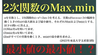 今回は東北大学2023年文系第3問。軸の動く最大最小の問題。