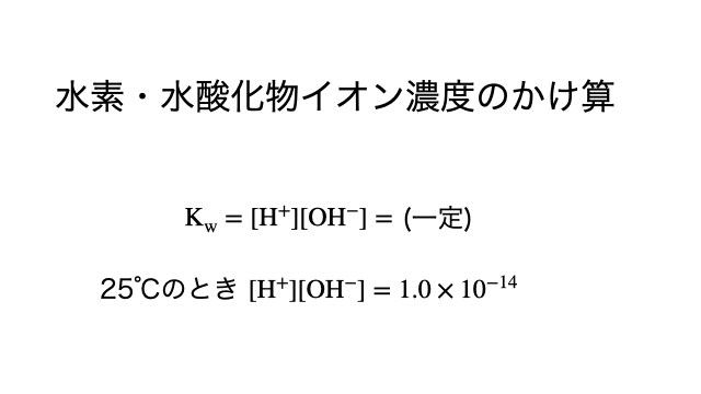 25℃の水溶液中では「水のイオン積」がになります。詳しくはリンク先をチェック!
