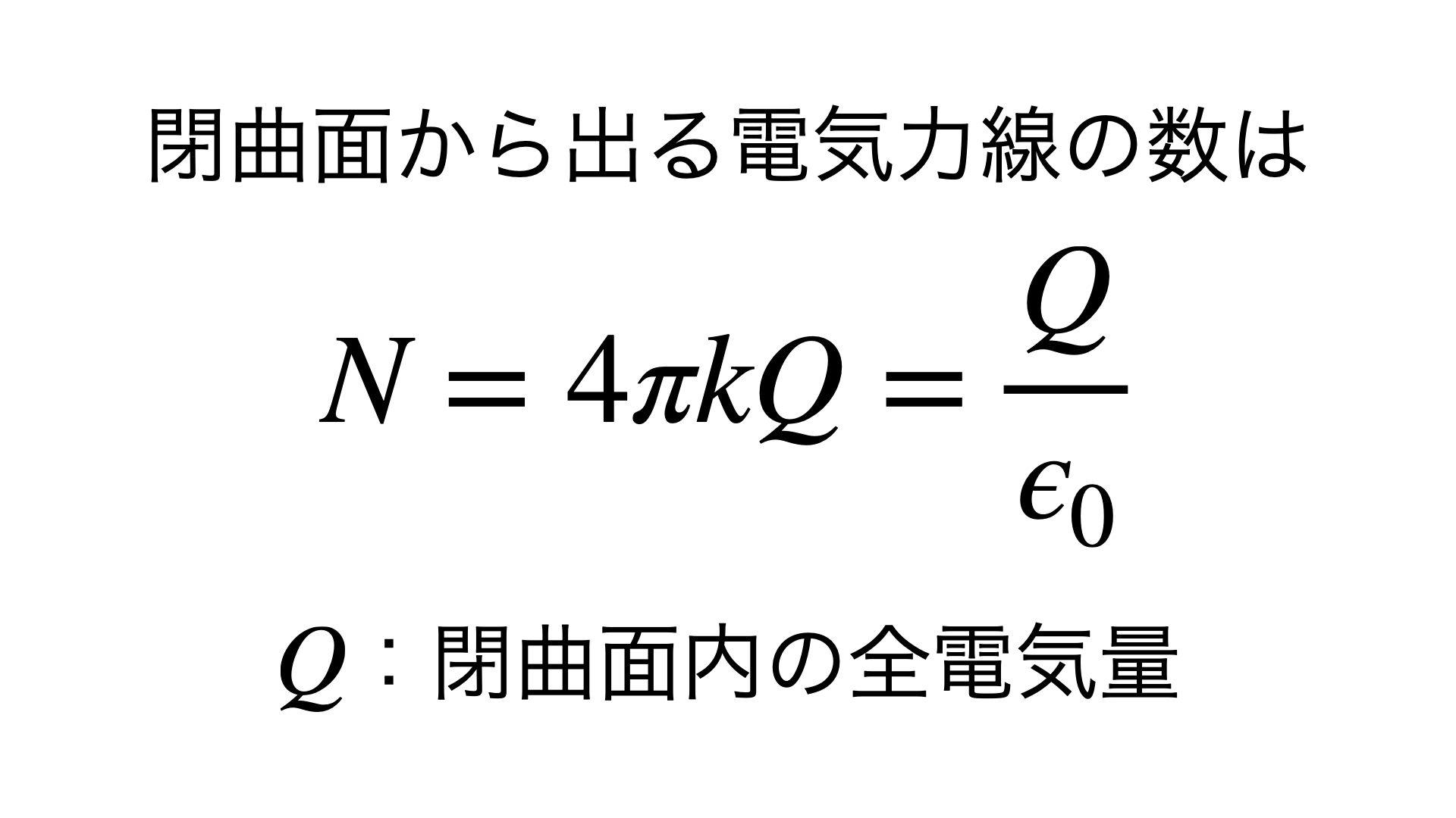 ※ ガウスの法則は、どんな閉じた曲面をとってきても、その中に電気量