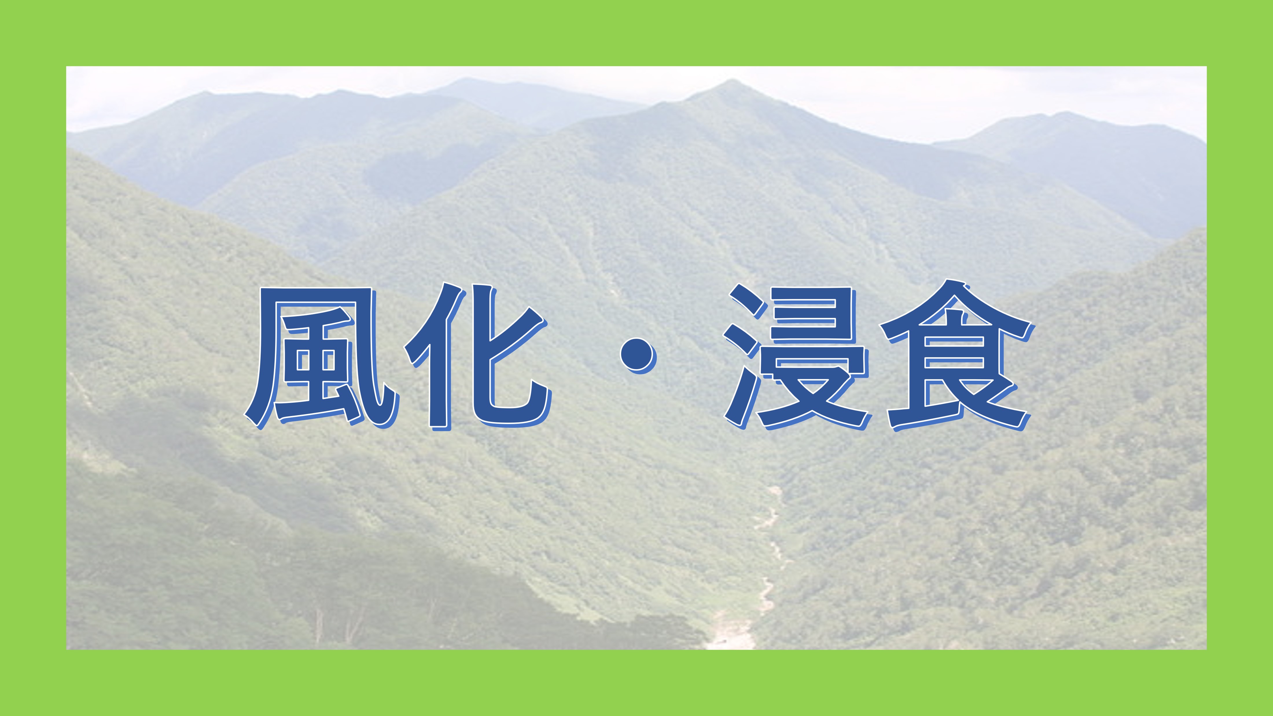 内的営力によって隆起した地形が、外的営力によって浸食され、さまざまな地形が作られて最終的には平原になる。