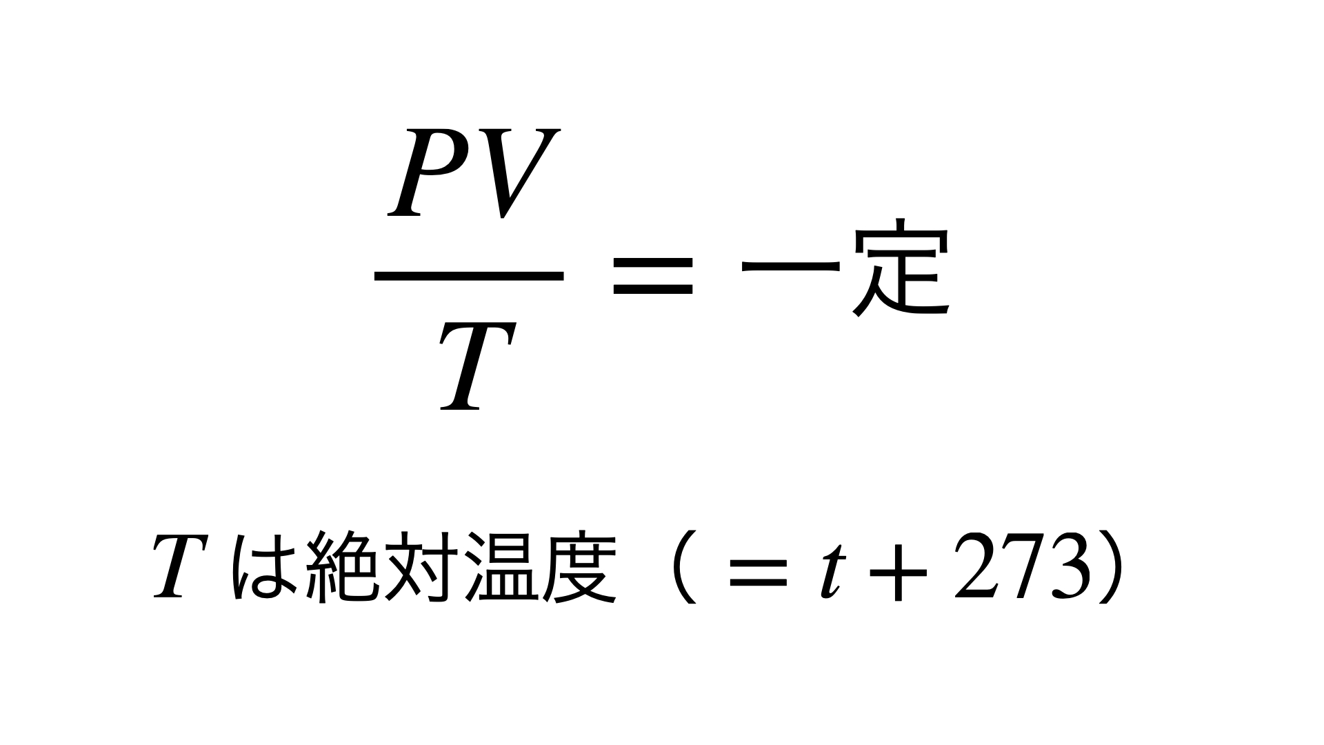 これをシャルルの法則という。(問題を解く上では、指定されていない限り、絶対温度は として計算すれば良い)