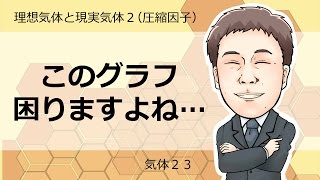 ちなみに、圧力の目盛りは100気圧とバカデカいです。1気圧ならグラフの左端のほぼ原点のところで、どの実在気体もほぼ