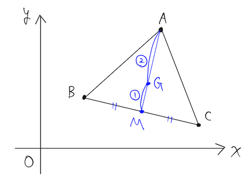 と表される。三角形 ABC の重心 G は、AM を 2:1 に内分することから、分点公式より